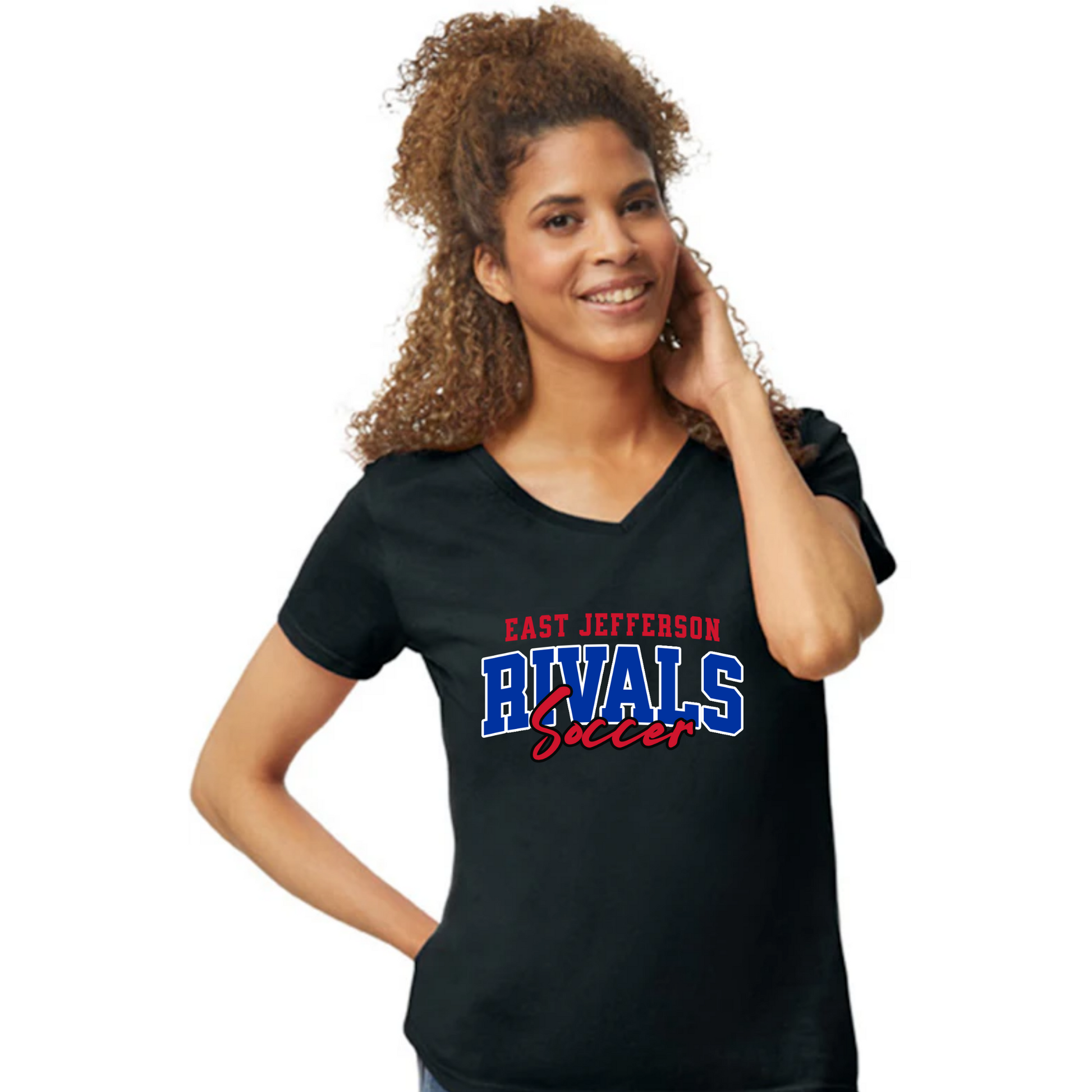 Unisex East Jefferson Rivals Womens V Neck Tshirt!