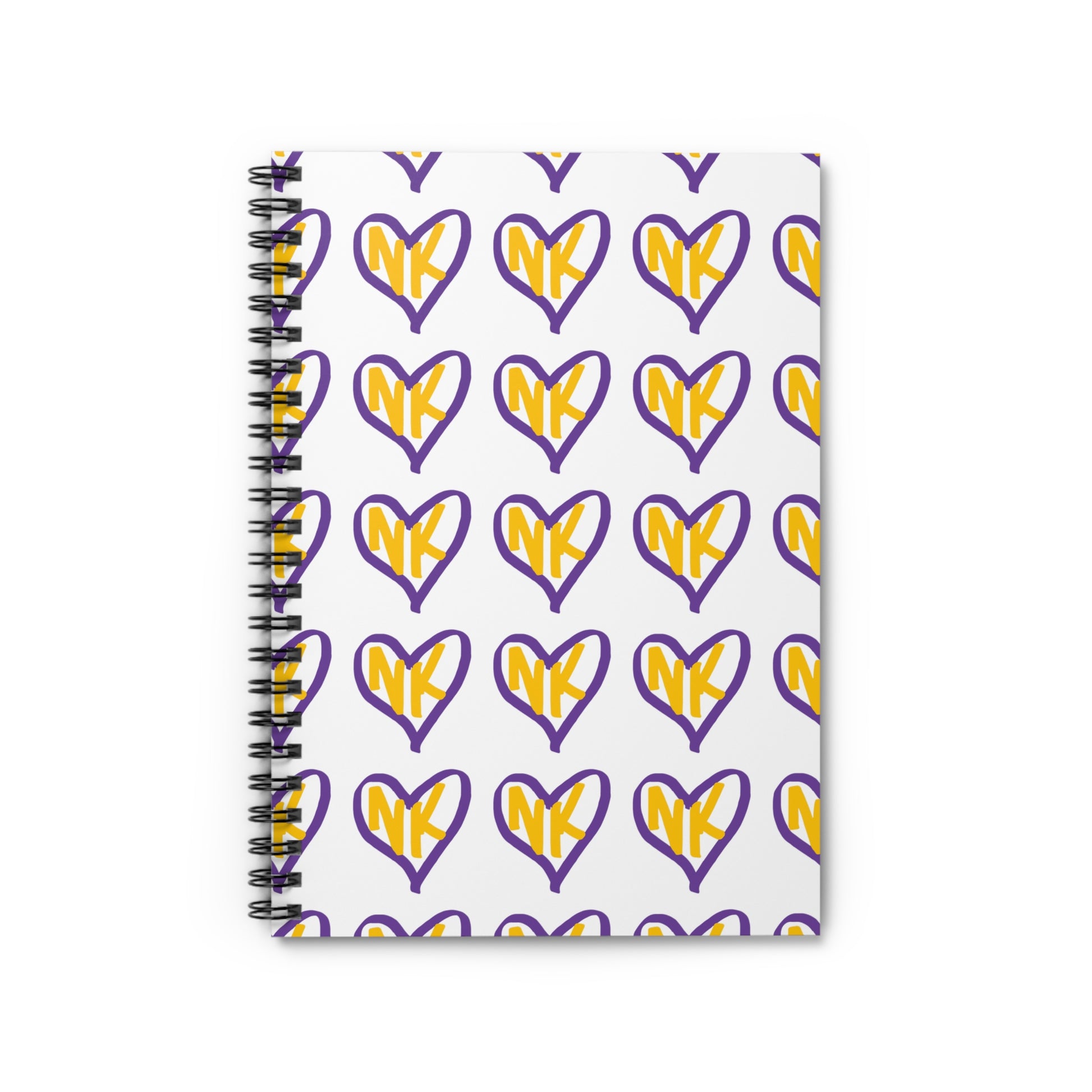 NK Cares Heart Spiral Notebook - 118 page spiral notebook with ruled line paper is a perfect companion in everyday life. The durable printed cover makes the owner proud to carry it everywhere.