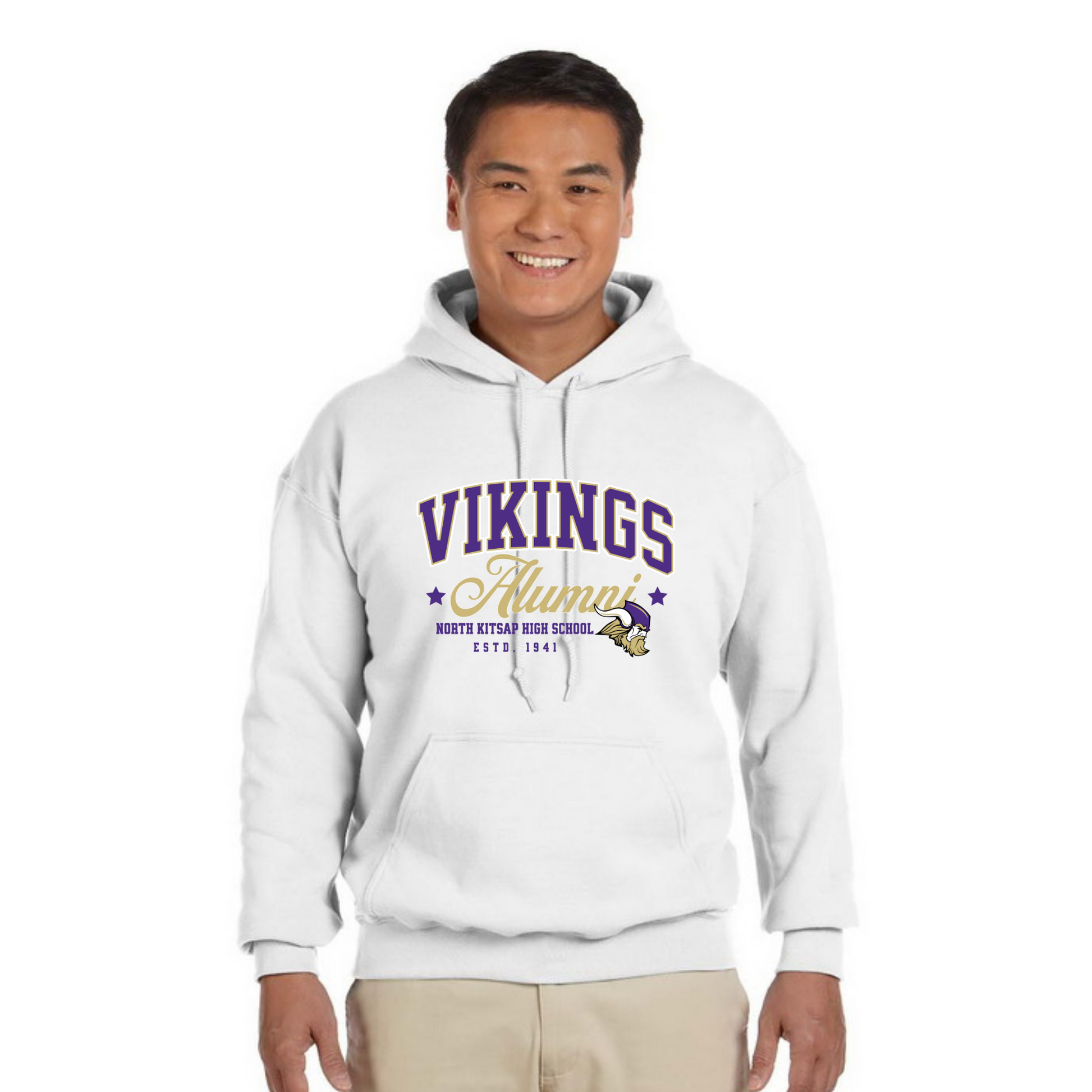 Show your Vikings pride with this white hoodie, perfect our North Kitsap High School alumni! Get ready to cheer on your team and celebrate homecoming in style this fall. Comfortable and casual, it’s the ideal way to reconnect and relive those unforgettable school days.